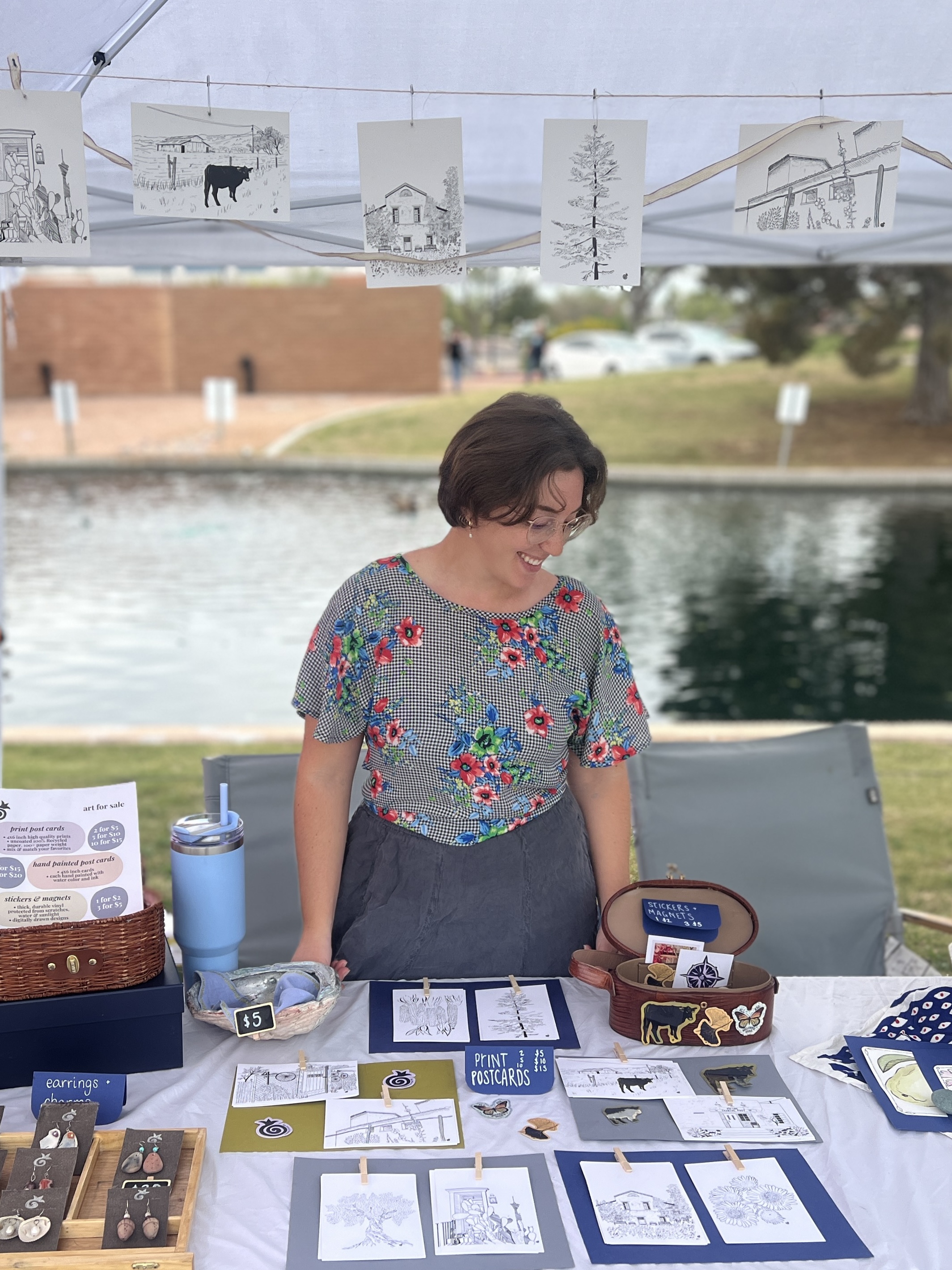 Isabelle Young is a young artist who seeks to use art as a tool to learn about the world and appreciate the delights of life. They grew up near San Francisco, and earned a 3D studio art and art education degree at the University of Arizona. Living in Tucson and the Bay Area has a profound effect on the art and perspective Isabelle has on the world. Isabelle has always been a person who keeps busy with all kinds of tactile and digital projects, ranging from gardening to welding steel to paper making. Currently, Isabelle travels North America full time in her self-built off-grid tiny home with her partner Isaac (who created and maintains this website) and lively cattle dog, Artie. Isabelle is driven by the desire to “stretch the creative muscle” in any way that feels good, hence has created her own platform to share her art and adventures. Thank you for your interest and support, it makes this all possible!