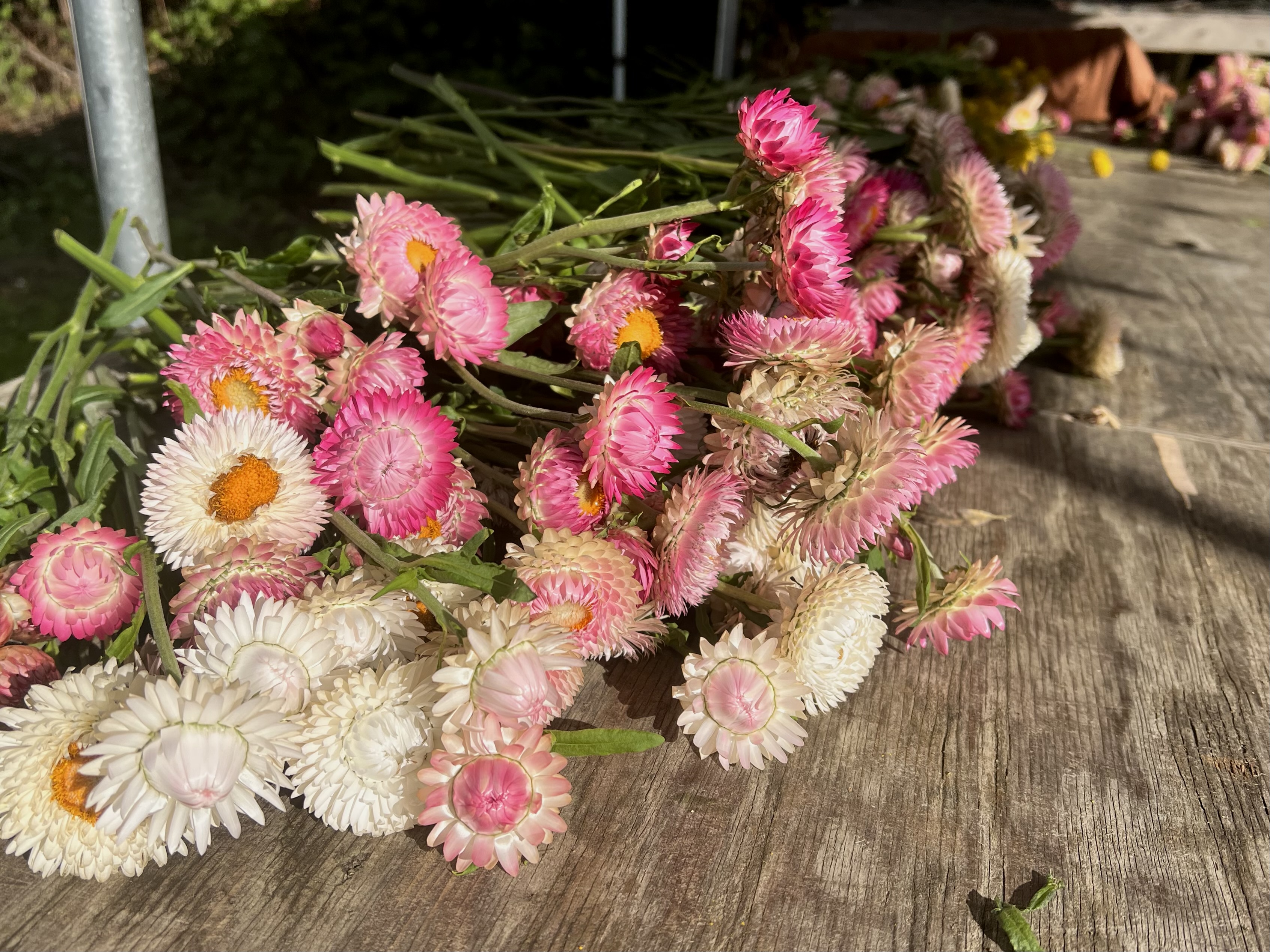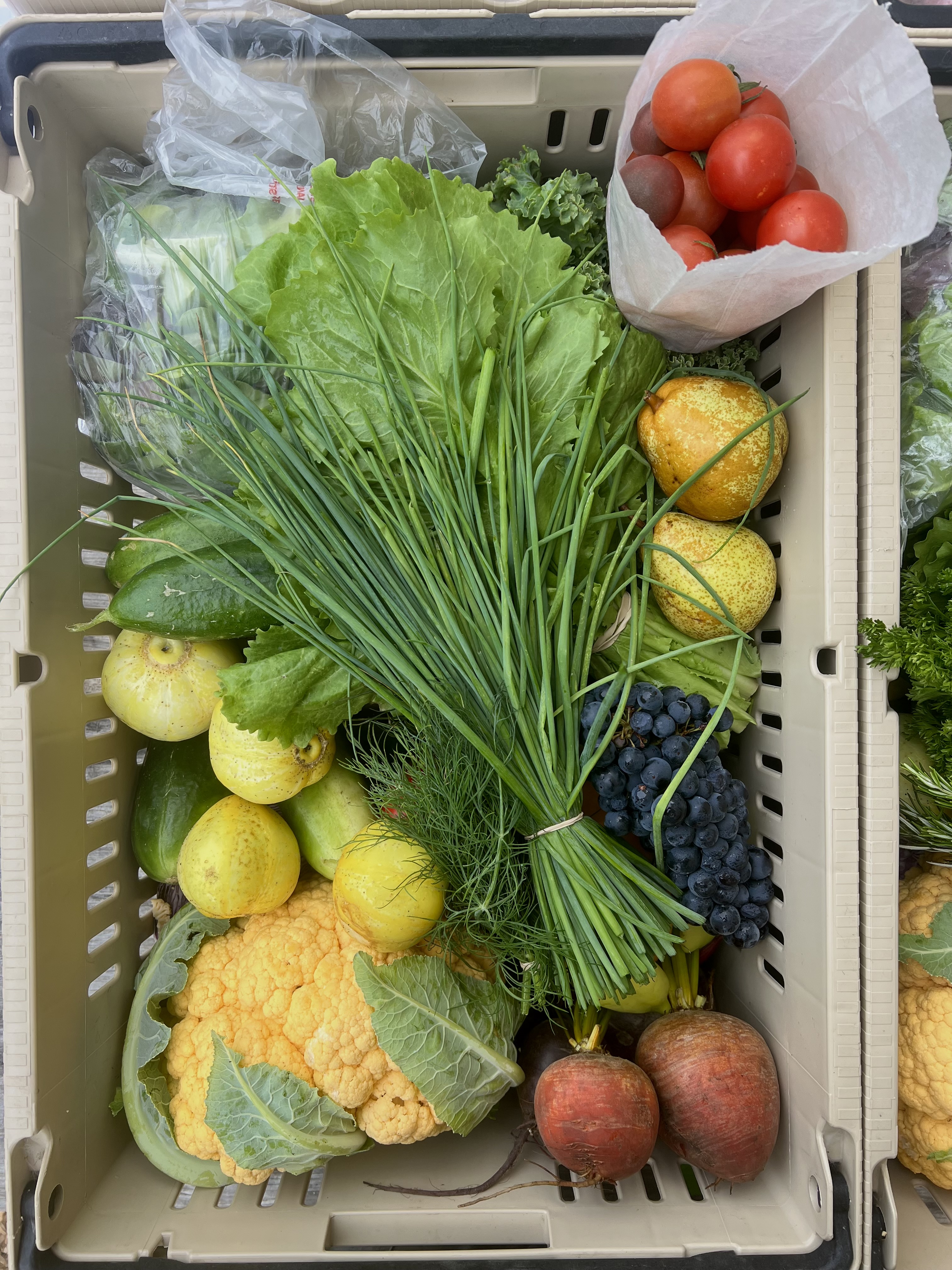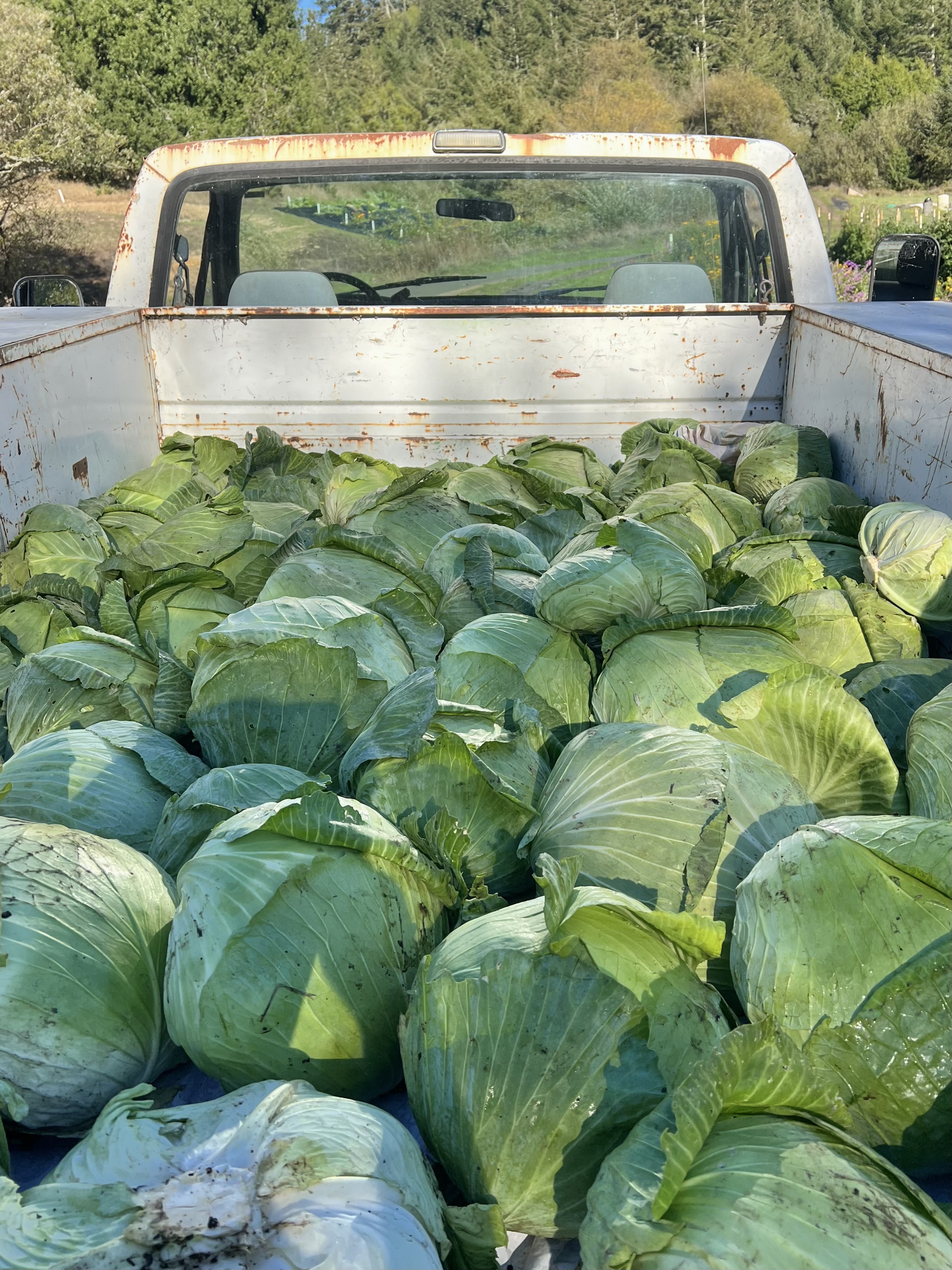 Our harvest baskets became increasingly colorful, varied, and abundant. Our brassicas (red and green cabbages, cauliflower, broccoli, and broccolini) had a miracle of a growing season this year, as most heads weighed between 6 and 17 pounds per vegetable! Our late start to the cut flower terrace went unnoticed for a time as we prioritized harvesting, processing, and storing the hundreds of pounds of giant brassicas. In quiet, the terrace rewarded its rest with heavy buckets and hundreds of mini-bouquets when we found time to harvest.