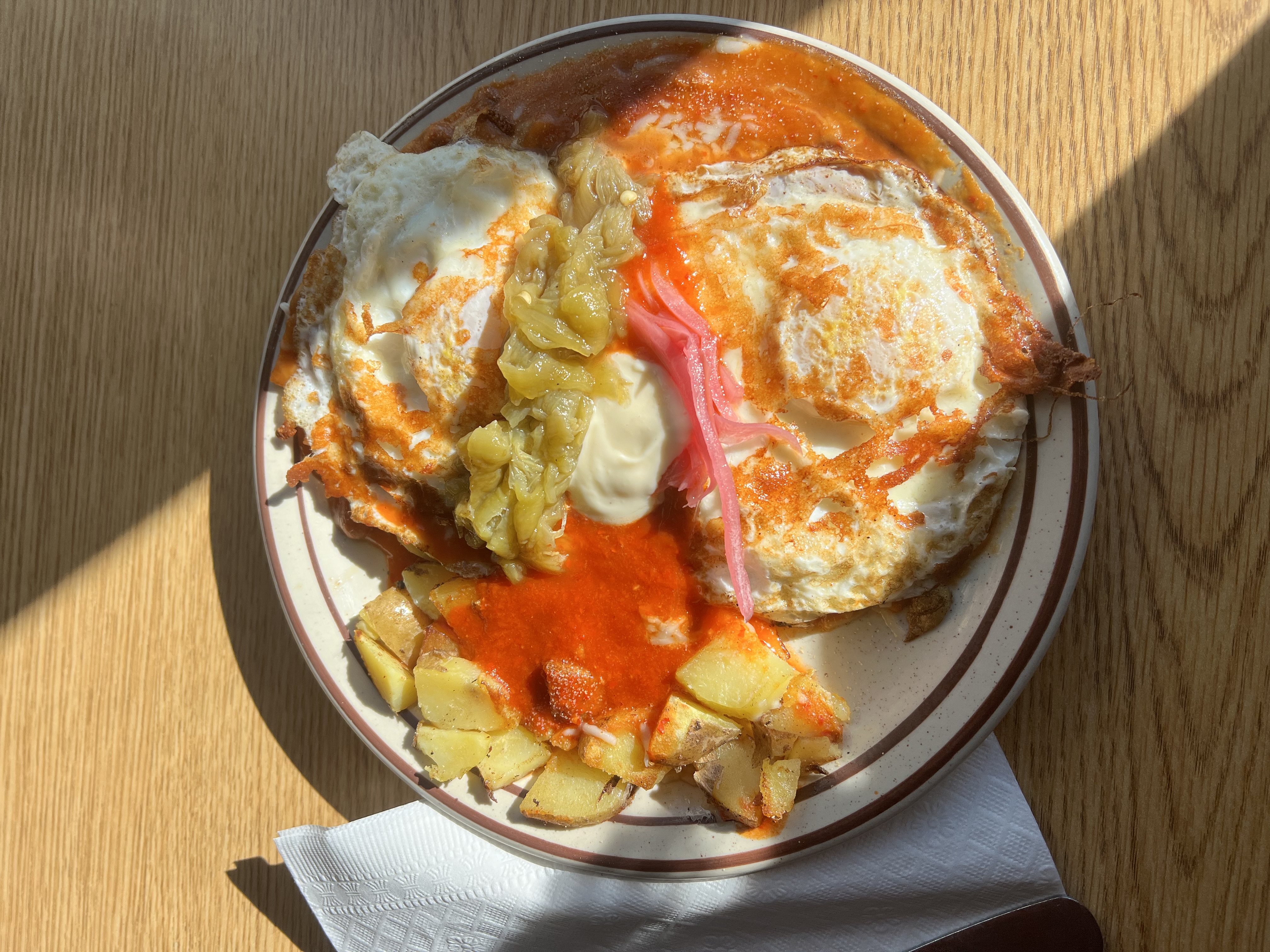 The next morning, we had a quick farewell to the lush Sonoran Desert and entered the high desert in Cibola National Forest, NM across from El Malpais National Monument, among the red-streaked canyon walls and snow-spotted piñon pines. This campspot was closest to the town of Grants (30 minutes away), so we drove into town a few times to eat Blake’s Lotaburgers with green chili. We also visited Albuquerque (1.5 hours away), where Artie had a vet appointment. There, I walked around Old Town and visited the San Felipe de Neri Church and many shops with local art, many of which date back to being built 300 years ago upon Spanish colonization. Isaac and I enjoyed a classic New Mexican meal of chilaquiles and a breakfast burrito at a spot downtown called Es Que Market, where the chef is a retired public school cook who sources his ingredients local and uses his family recipes. To no surprise, the meal was so flavorful and colorful! To us, Albuquerque felt similar to Phoenix, with a business oriented downtown surrounded by strip malls and suburbs in a valley amid desert mountains. Nights were cold in Grants; the lowest being -9ºF! It is the coldest Isaac and I have ever experienced, and we established a good routine of having a warm dinner and getting into bed when the sun went down, cozy up with our electric blanket, insulated blanket, sleeping bag next to the window, and Artie curled up at our feet. Isaac bought bright red long johns for us to wear as a base layer, and although we both looked like silly little elves, they kept us warm. Most mornings, we woke up to our electric blanket turning off automatically, our sink water pipes frozen, and the composting toilet solids chamber hard as a rock. It was a challenge I was up for, and although Isaac was worried about it, we made it through. One morning, we spotted icicles hanging off the side of Lady Loam!