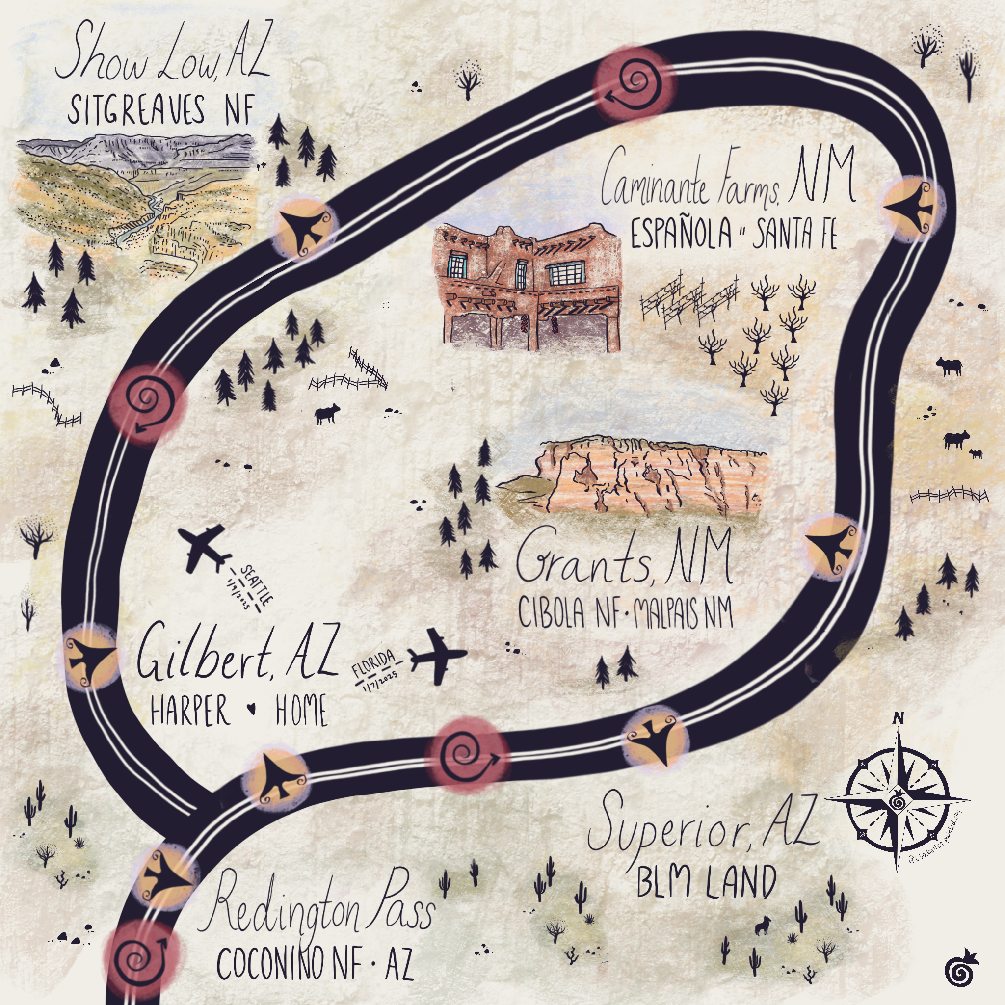 After our week-long camping trip in Tucson, we made our way back to Gilbert. I sold art at a flea/vintage market in Phoenix, then made a trip to Jacksonville, FL for a few days to be with family. 12 hours after leaving the PHX airport after arriving back from the East Coast, I returned with Isaac to visit Seattle where we stayed with my best friend Mina and her partner Ben. We adventured through the Capitol Hill and West Seattle neighborhoods, took the ferry to Bainbridge Island, and ate at some delicious restaurants. It was so much fun to adventure through a city as an adult with free will, and refreshing to spend time with my best friend (we hadn’t seen each other in 4 years!).