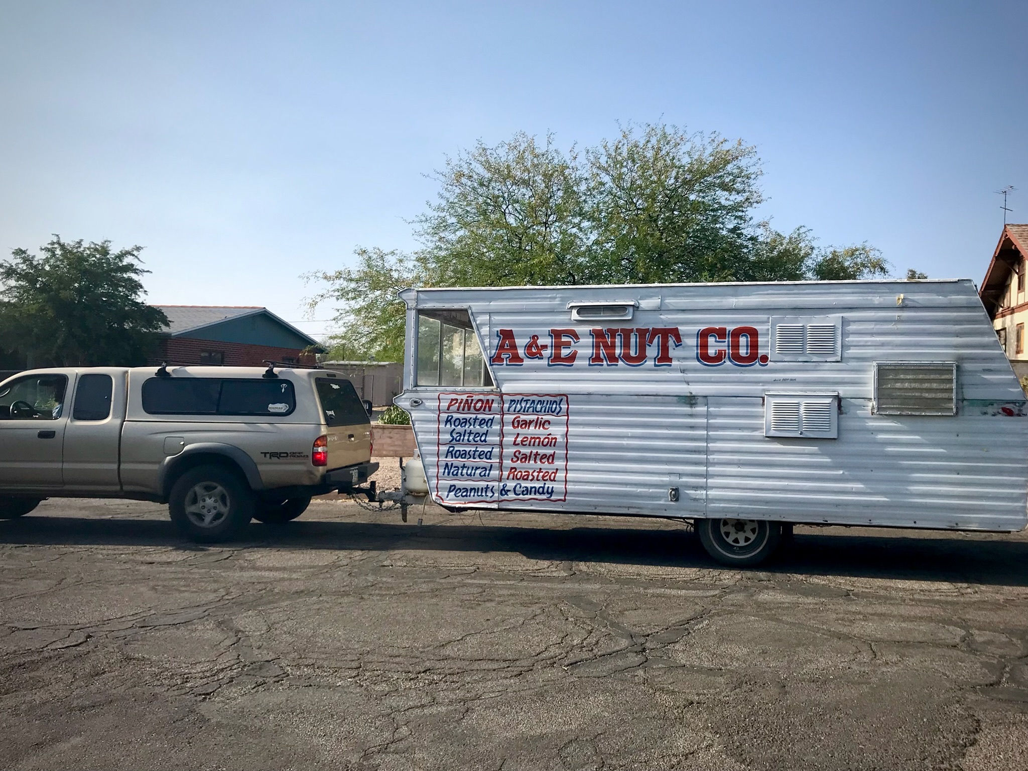 In February of 2022, I made the dream concrete when I reached out to Jesus from South Tucson about his “1963 Pacer” listed for $1250. We drove out to see it, and it was indeed a fixer upper. The trailer smelled like old wood, and Jesus had gutted the inside and began to fill the interior with low quality R-Tech insulation. He had also patched up the corregated aluminum on the exterior with matching vinyl and had it painted to say “A & E Nut Co.”, replaced the door with a cheap insulated one, but made no improvements to the rotting wood floor and ceiling. He had a big lot with a number of motor vehicle projects, all of which were very DIY and very random. He said he bought the trailer from an older lady, and planned to fix it up into a food truck but like a lot of the dusty things around, this one fell through. Isaac and I hypothesized that of anything, we can use the trailer bed and start from scratch. We compared the value of the 60 year old trailer steel bed to our bargained price, and figured just the bed itself was worth the money. I went home and sketched the layout I had envisioned, and begun to get really excited. We thought it strange that the Pacer Trailer design was hard to research online; barely any traces of it’s existance in the manufacturing realm or 60’s travel trailer commercials, (opposed to the king of dreamy vintage trailers…the Airstream) but we decided the deal couldn’t get any better, even with a teardown situation.