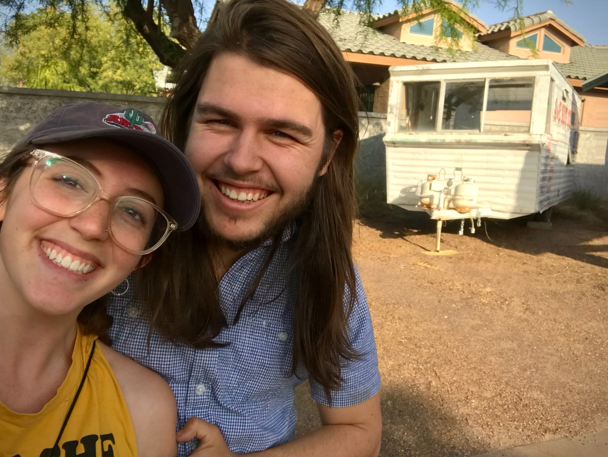 We slept on it, and visited again a week later with our friend who can tow a trailer on her truck, and I bargained the price down. We drove to a nearby bank so I could make a withdrawal, and excitedly called my dad to tell him the news. That warm spring day on April 22, 2022, we drove out with the deed in hand and the trailer hitched up. The ride back to our rental house in central Tucson was wild - the trailer creaked and groaned, swayed from side to side, and semi-attached plumbing pipes clanked around. We backed the trailer into the side of our rented house, and that’s when real journey began.