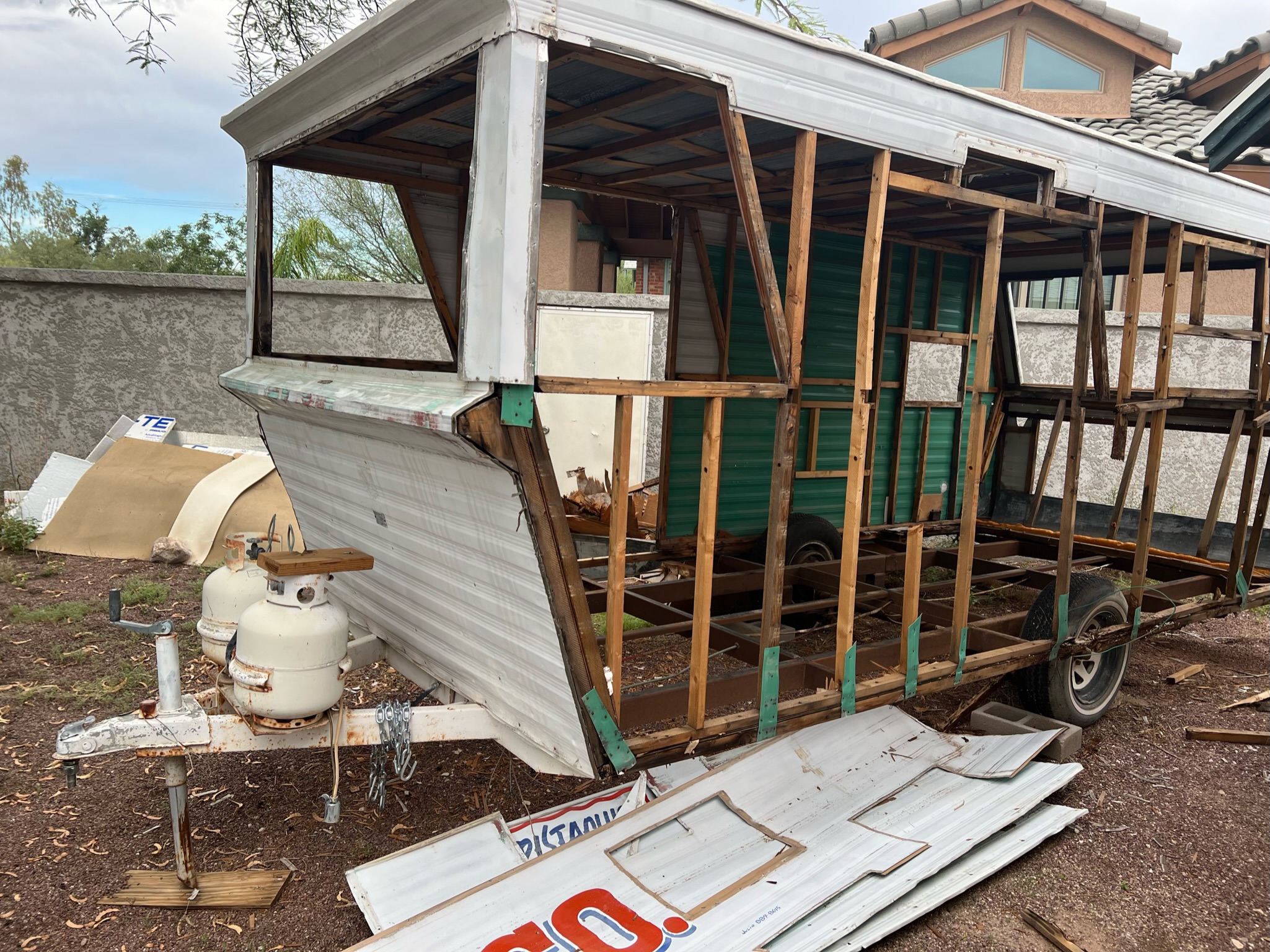 So, we took the hard way around. Stage by stage, conducting hours of research and cross reference, utilizing “Youtube University”, stuffing Isaac’s CRV with unsalvagable materials from the original build to dump at nearby parking lot dumpsters. We worked on demolishing the structure weekend after weekend, fitting it into our busy schedules and employing friends to help demolish the once-neglected camper trailer. Once I had the trailer registered in my name, it all really felt real.