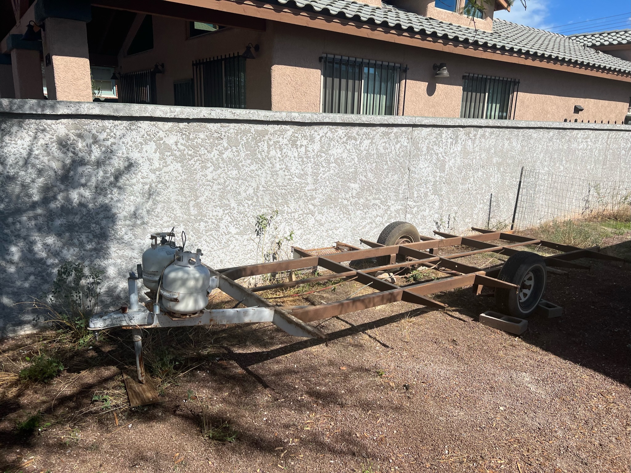 From there, we sorted the materials into “salvagable”, “trash”, and “donate” and got to work clearing it all out of the yard in one day. We were left with the simplicity that is a flatbed trailer. The steel was in good condition overall; it just needed a few (many) hours of angle grinding to sand down the accumulated crud and rust. Truly the best case scenario; the investment I had bought for $1,200 was worth much more in just the steel, wheel axel, and registration/title alone. Although we were disappointed that we weren’t able to utilize the existing walls and roof, and all that material, we were looking forward to rebuilding it better and exactly to our preferences.